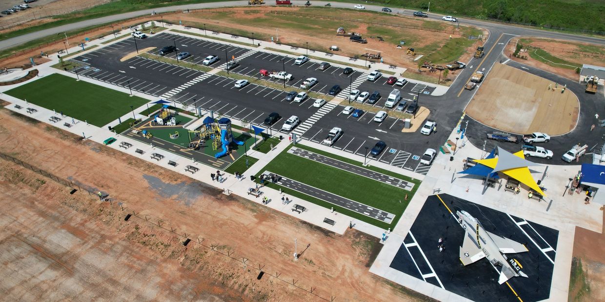We’ve had the privilege of completing some of the region’s most recognized installations — including the Charlotte Douglas International Airport Overlook Playground, an $8 million redevelopment project — as well as the Mount Mitchell Middle School playground rebuild in Bakersville, NC, following Hurricane Helene. The resilience of that community made the project especially meaningful to us.